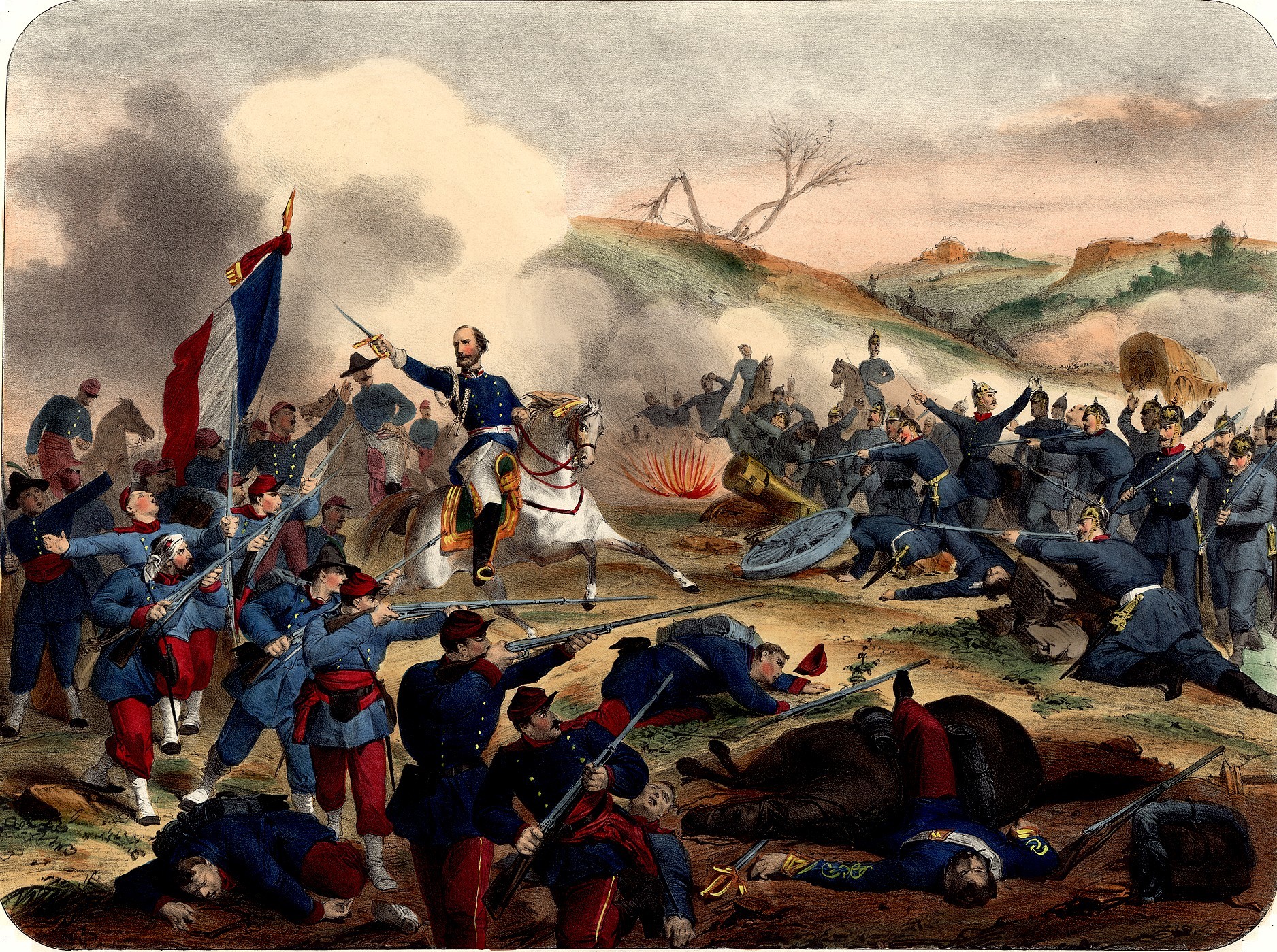 Garibaldi à la bataille de Dijon 21-23 janvier 1871 - Anonyme, lithographie, colorié, Carnavalet